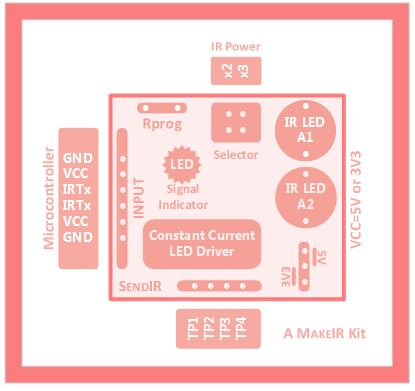 The second member of our MakeIR series of devices & kits will be SendIR. This infrared emitter module boasts several unique features not readility available to date and is built with only the highest quality IR components available.