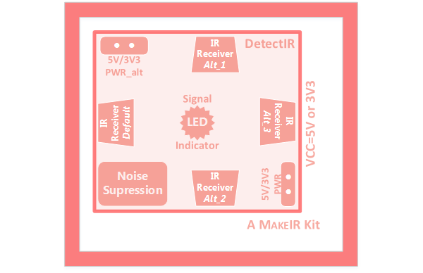 The fourth member of our MakeIR series of devices & kits will be DetectIR. This infrared receiver module can be configured for Visual IR signal detection, Serial over IR or as an Infrared receiver which can handle even the longest Air conditioner signals. DetectIR is built with only the highest quality IR components available.